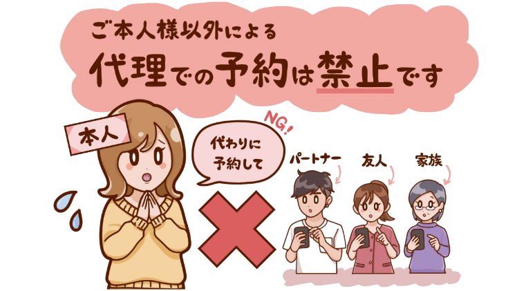 ご本人以外のスマホでの予約が発覚した場合は予約は無効になり、ご自身のスマホで予約を取り直していただきます。